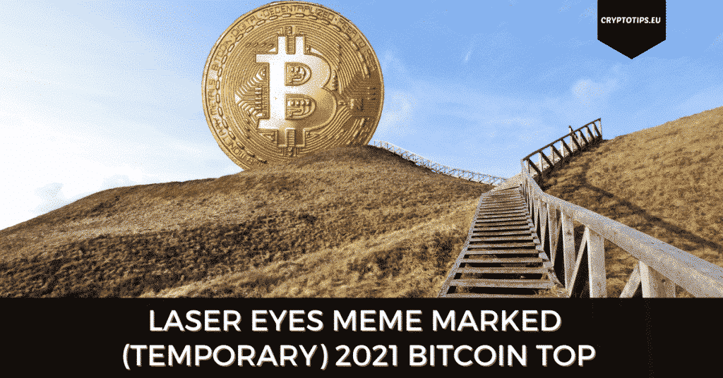 De twitter laser eyes meme hype markeerde een tijdelijke bitcoin top voor 2021 en de bitcoin waarde daalde van $58.000 naar $44.000.